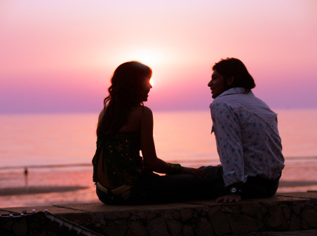 200562841-001 October 26, 2009 452 × 337 Với Nhau Young couple sitting on beach wall, rear view, sunset