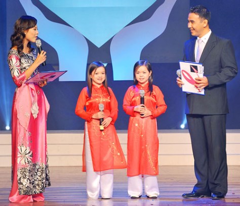 Thanh Hằng – Thanh Hà trong chương trình Tích hạt yêu thương hát vì nạn nhân Dioxin tại Nhà hát TP.HCM tháng 8-2009 – Ảnh: Nguyễn Á