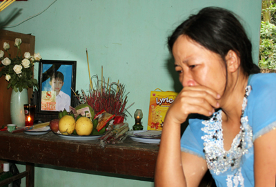 Người mẹ nghẹn ngào bên bàn thờ đứa con dũng cảm… (Ảnh: Thế Cường)
