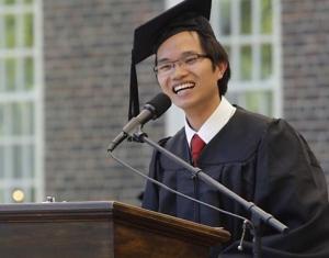 Tan Nguyen, the son of parents who make tofu in an open-air market in Vietnam, is receiving both a bachelor’s degree in applied mathematics-economics and a master’s degree in economics. He was chosen as one of two senior orators from among 80 classmates nominated by faculty and seniors in December. The video and text of his oration follow here. (See also the video and text of Senior Orator Tatiana M. Gellein.)