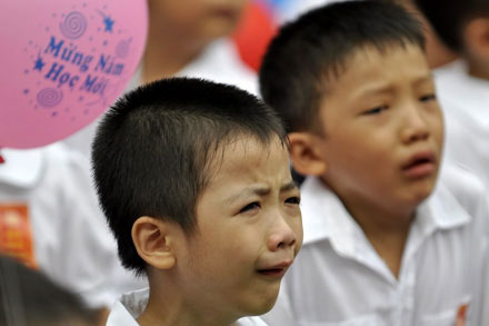 Có bé còn mếu máo…