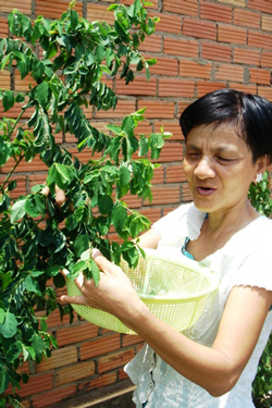Là một Phật tử, chị phát nguyện ăn chay nhưng bữa cơm của mẹ già vẫn phải có thịt cá vì mẹ đã lớn tuổi, cần đảm bảo dinh dưỡng. Cách đây 3 năm, chị được chính quyền xã cấp căn nhà tình thương, mỗi tháng được nhận trợ cấp 120 ngàn đồng. Số tiền này cùng những cây con trồng và nuôi trong vườn cũng chỉ đảm bảo cho hai mẹ con chị một cuộc sống đạm bạc.