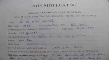 Đơn mời luật sư của bà Hồ Lê Như Quỳnh. Ảnh: Đ.Đ