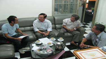Ban Giám hiệu trường THCS Mạch Kiếm Hùng làm việc với P.V vào chiều 23/11. |