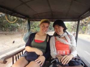 Vừa bước xuống xe là chúng tôi, (lại một lần nữa) bị bao vây bởi một đám đông toàn mấy người đàn ông lái xe tuk tuk, cảnh tượng giành giựt cũng chẳng đỡ hơn tí nào so với lúc ở Phnompenh, mà thấy còn sợ hơn vì mấy người này toàn đàn ông và trời thì đã tối. Mấy người trên xe ai nấy đã nhanh chóng tản mác đi về, thoáng chốc chỉ còn lại mỗi hai đứa tôi và 3 người bạn đường bị giành giựt nhau bởi mấy người chạy xe tuk tuk. Lẽ ra từ khách sạn đã có xe ra đón chúng tôi như đã đăng kí, nhưng vì xe đưa chúng tôi tới trễ quá nên ở khách sạn chẳng còn xe ra chở nữa, tôi và nhỏ bạn phải tự đón xe về.