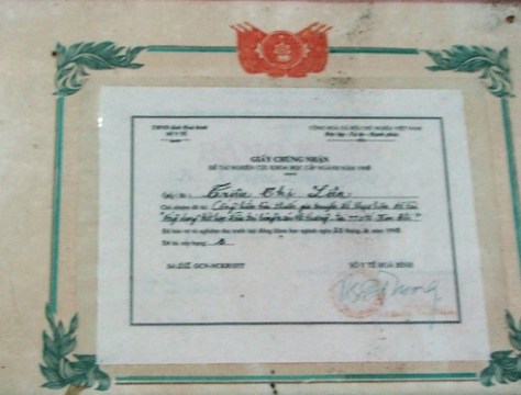 Giấy chứng nhận của Sở Y tế Hòa Bình về “bài thuốc chữa bỏng cổ truyền” của lương y Triệu Thị Liên có hiệu quả chữa bệnh. Ảnh: Chu Hiền.