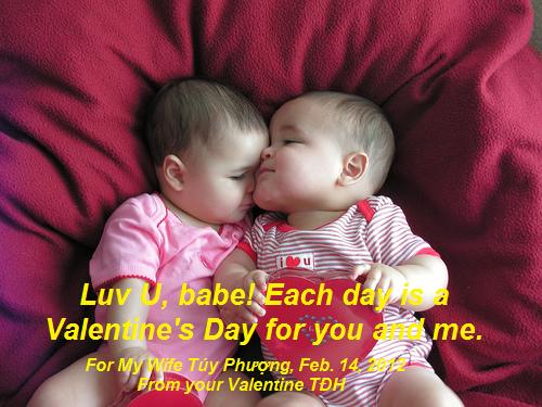 @ chuot tui… “rang quet vuon chuoi cho that ky , coi co con phieu nao nag ky hon hong ?”… Thông báo với bạn là có phiếu của mình đấy. Và còn có nhiều phiếu khác trong vườn chuối mà mình sẽ chờ để các anh chị ấy trả lời cho bạn. Phiếu của mình có sức nặng bằng 37+ năm hôn nhân cộng với một tình yêu mà chồng mình nói với mình: “Each day is a Valentine’s for you and me” thì có nặng ký đủ cho bạn chưa nhỉ? Chẳng tin thì bạn có thể xem lại thiệp Valentine của chồng mình (ảnh hai em bé) ở cuối bài này. 🙂