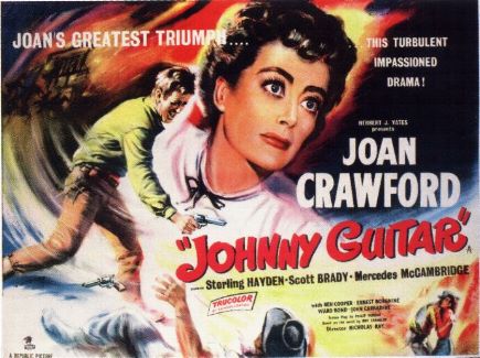 Phim Johnny Guitar (1954): Đạo diễn: Nicolas Ray. Diễn viên: Joan Crawford, Sterling Hayden, Scott Brady, Merdedes MacCambridge, Ward Bond, Ben Cooper, Ernest Borgnine. Lấy bối cảnh là quán rượu miền viễn Tây của Vienna (Joan Crawford). Johnny Guitar (Sterling Hayden) sau năm năm luân lạc giang hồ, anh đã quay lại đây tìm gặp lại người tình cũ Vienna. Từ đó bao ghen tuông, hận thù và đổ vỡ nảy sinh….