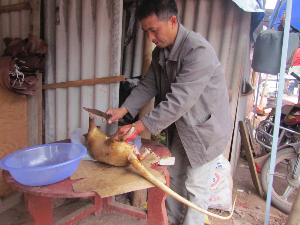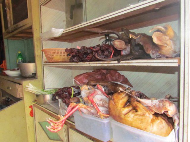 Trần đời, lần đầu tiên mình được chứng kiến cảnh mua bán – chém giết – chế biến – ăn thịt động vật hoang dã công khai và tràn lan như vậy, ở ngay chợ đường biên A Pa Chải. Dĩ nhiên, những cảnh này diễn ra bên phần đất Trung Quốc, nhưng “thượng đế” nhâm nhi, thưởng thức thịt rừng, thậm chí mua lại về nhà, đa số là người Việt.