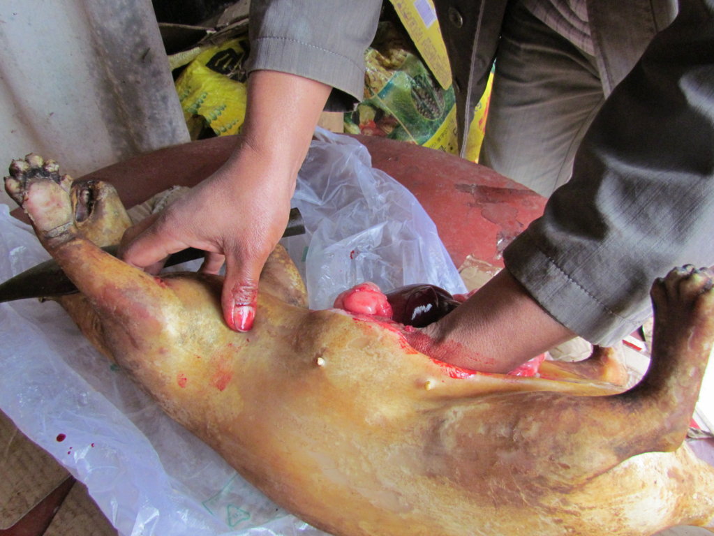 | Thú rừng bị thui rơm, chờ mổ thịt |