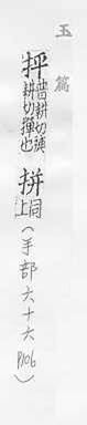 拼, 古文抨同, 謂彈繩墨為拼也。—— 唐 · 玄應 《 一切經音義》