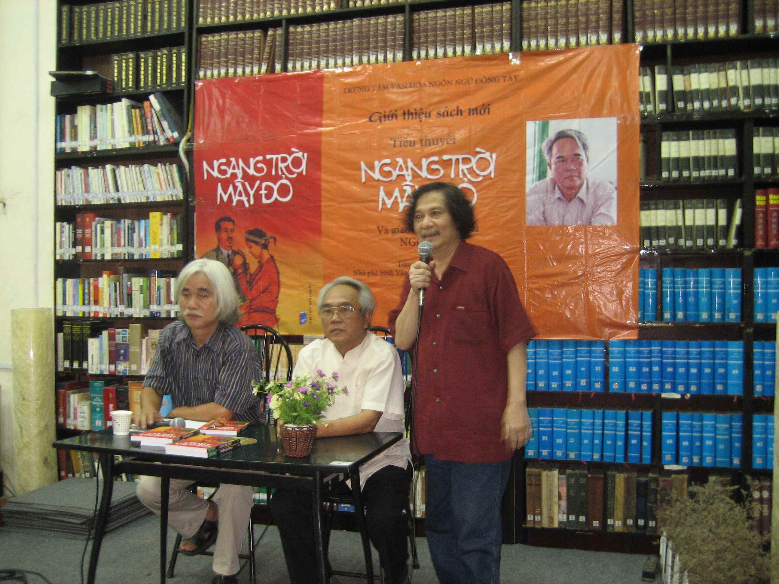 Thế Sinh phát biểuvNhà văn Ngọc Bái, nguyên Giám đốc Sở VH-TT Yên Bái, từng đắm đuối và ấp ủ ý tưởng tiểu thuyết về nhân vật lịch sử Nguyễn Thái Học từ hàng chục năm nay. Lúc đương nhiệm, ông cũng là người chủ trì công trình xây dựng vườn hoa mang tên Nguyễn Thái Học ngay tại tỉnh Yên Bái. Trước khi hoàn thành tiểu thuyết “Ngang trời mây đỏ”, nhà văn Ngọc Bái đã ra mắt trường ca “Lời cất lên từ đất”. Tiểu thuyết Ngang trời mây đỏ của nhà văn Ngọc Bái viết về cuộc khởi nghĩa Yên Bái do lãnh tụ Quốc dân Đảng Nguyễn Thái Học cầm đầu. Cuộc khởi nghĩa này đã bị dập tắt và lãnh tụ Nguyễn Thái Học đã bị xử bắn… Điều làm nên thành công của cuốn tiểu thuyết là nhà văn Ngọc Bái không tái hiện lịch sử một cách khô khan, mà khắc họa tinh thần yêu nước của những nhà Ái quốc. Trước máy chém của thực dân Pháp lần lượt từng người, từng người vẫn hô lớn: Việt Nam vạn tuế! rồi nhận lấy cái chết thanh thản trước hừng đông… Tiểu thuyết “Ngang trời mây đỏ” là lời nói tri ân đối với những người hy sinh vì đại nghĩa của dân tộc.