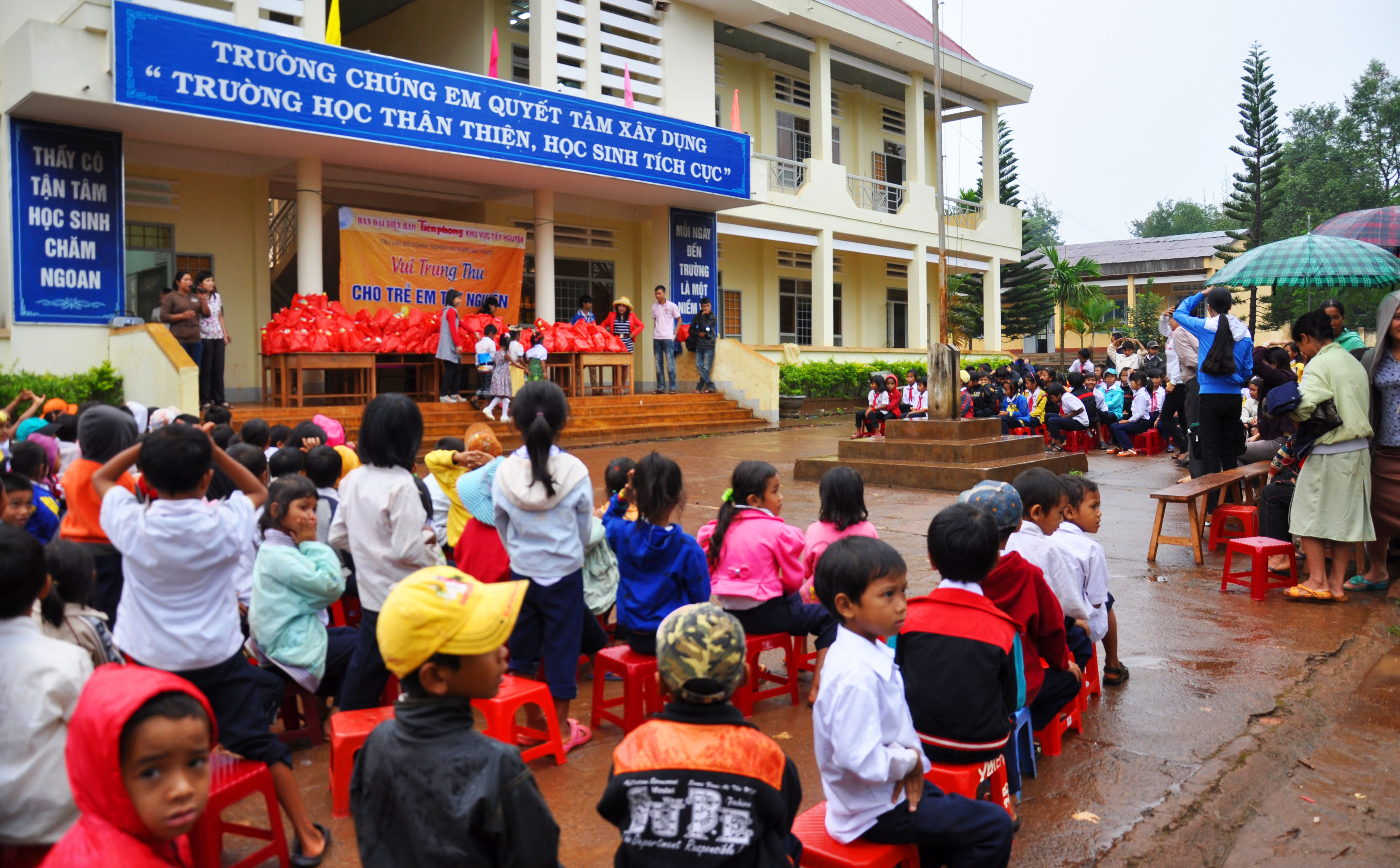 Cả tháng trước Trung thu, nhóm cộng tác viên Thiện nguyện của Ban Đại diện báo Tiền Phong khu vực Tây Nguyên đã tập trung “trinh sát thực địa” để chấm chọn những địa bàn khó khăn nhất, triển khai vận động quyên góp, đóng gói 1700 suất quà, ráo riết tập ca kịch để tặng trẻ em nghèo những cuộc vui khó quên.