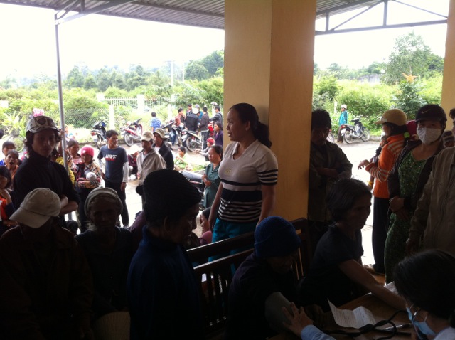 Nơi khám bệnh là trạm y tế xã, bà con chờ đông nghẹt. Mọi người đã có sự phân công, ai vào việc nấy, tuy vậy phải mất một lúc mọi việc mới chạy nhịp nhàng. Bà con hiền hòa, tuy đông người nhưng vẫn khá trật tự và yên lặng. Trẻ em đến khám cũng rất đông, người già cũng rất nhiều. Trong đoàn có cả các nha sĩ để nhổ răng cho các em đang tuổi thay răng.