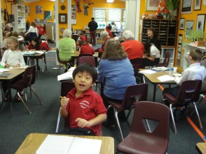 Hôm nay là ngày Grandparent Day ở trường của cháu ngoại mình, Gavin, sáu tuổi, học lớp một (Gavin có 2 tấm ảnh trong quyền TƯ DUY TÍCH CỰC Thay Đổi Cuộc Sống). Trong lớp có khoảng 25 học sinh, mỗi em đều có ông hay bà hay cả hai vào trong lớp ngồi và cùng học với các em một buổi.