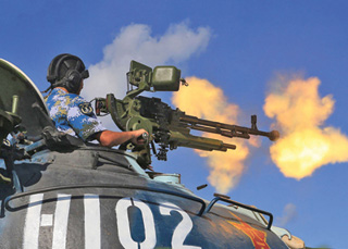 Quân Trung Quốc đồn trú trái phép ở “TP.Tam Sa” vừa tập trận bắn đạn thật – Ảnh: Nhân Dân nhật báo