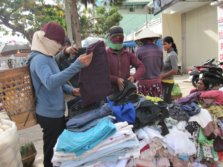 Hòa cùng không khí này, đó là góc bán đồ “xổ” trên đường Hai Bà Trưng (TP.Pleiku) cũng tấp nập không kém, khi có hàng chục người Bahnar ở thôn quê đang chăm chú lựa quần áo cũ. Tuy không có điều kiện để mua cho cả gia đình mình những bộ quần áo mới, nhưng với cách tính toán của mình, những ông bố, bà mẹ người Bahnar này cũng đã lo cho các thành viên trong nhà có những bộ đồ “cũ người, nhưng mới ta” để mặc đi chơi Tết, bằng cách mang gạo, ngô, mía… đi ra các tiệm đồ xổ để đổi.