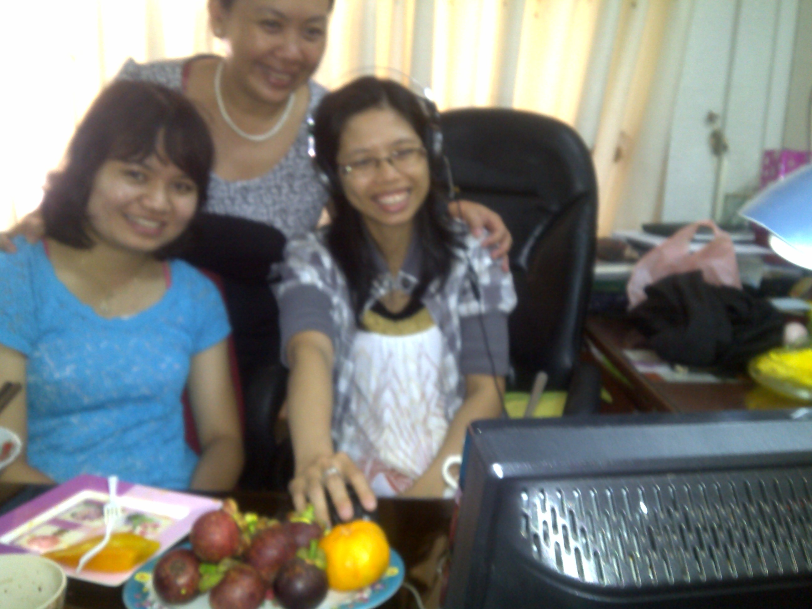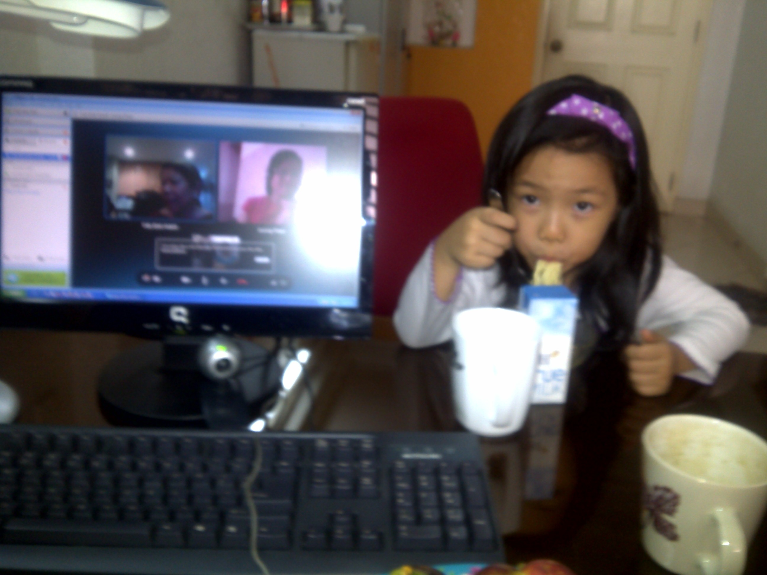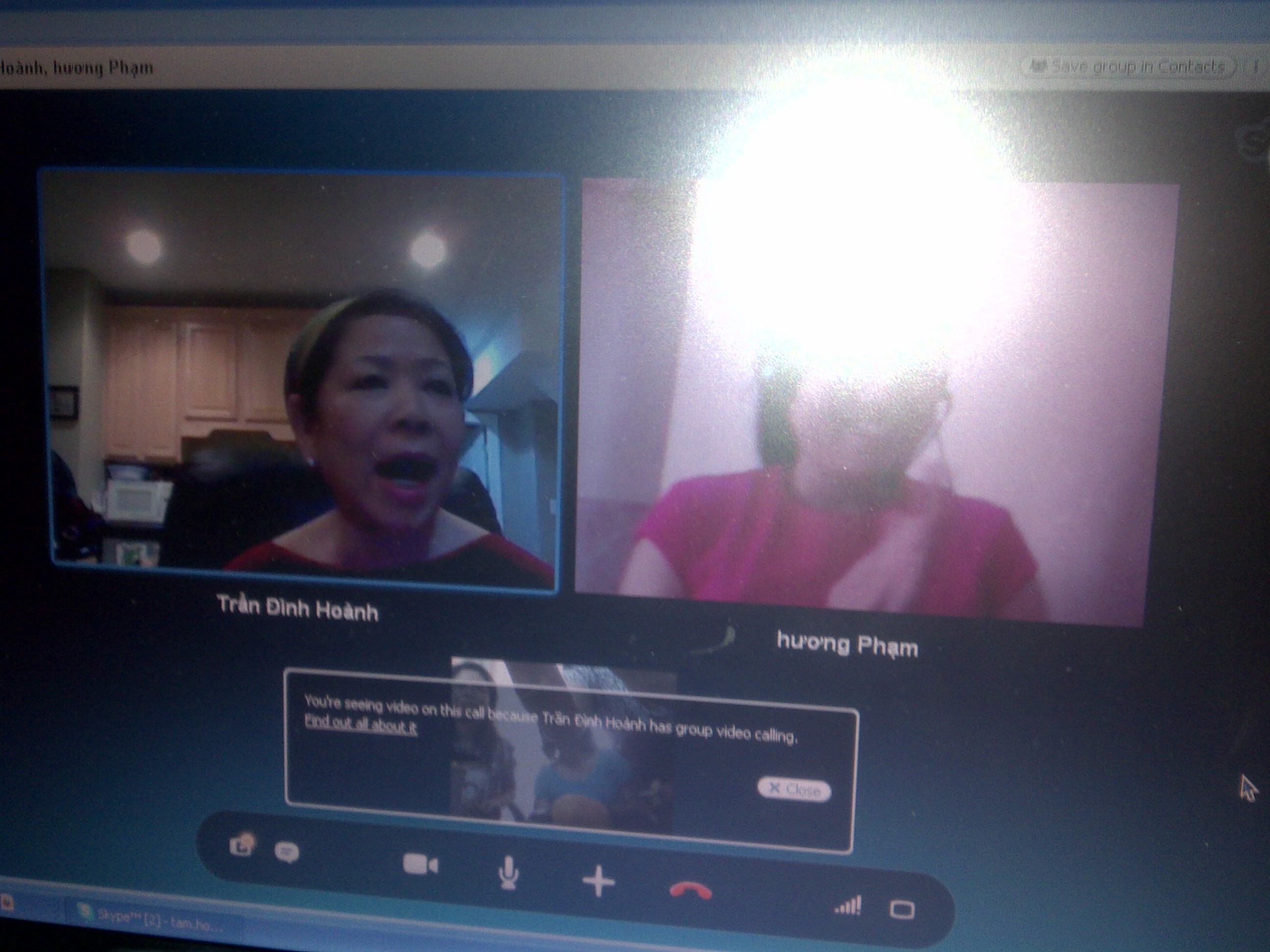 11 giờ sáng chúa nhât mồng 8 Tết (11 đêm thứ bảy ở Washington), mình và bà xã có Skype với Tâm, Quỳnh Linh và Cá, và Bảo Quyên ở Sài Gòn, và Thu Hương ở Đà Nẵng.