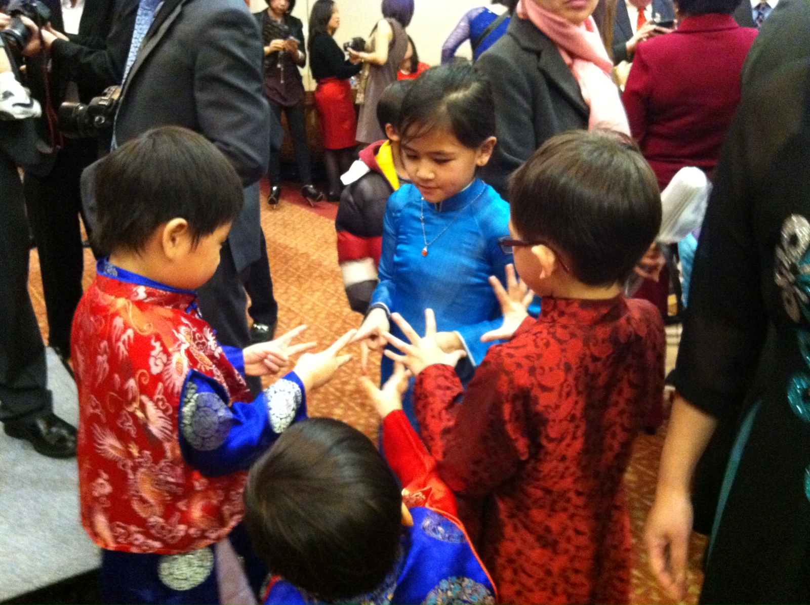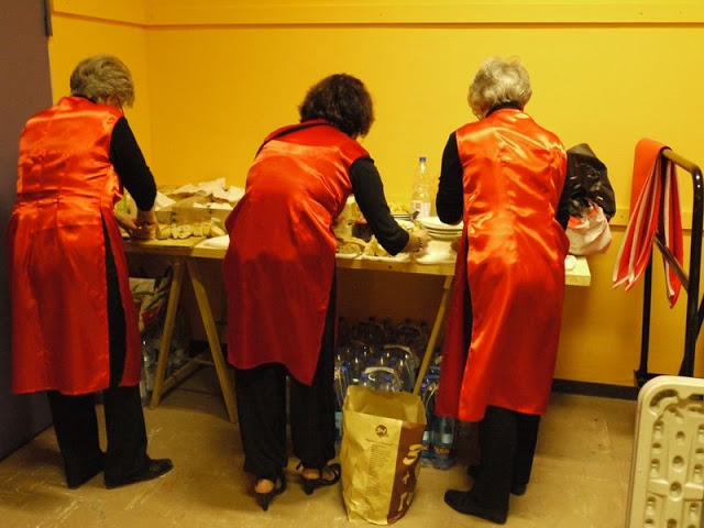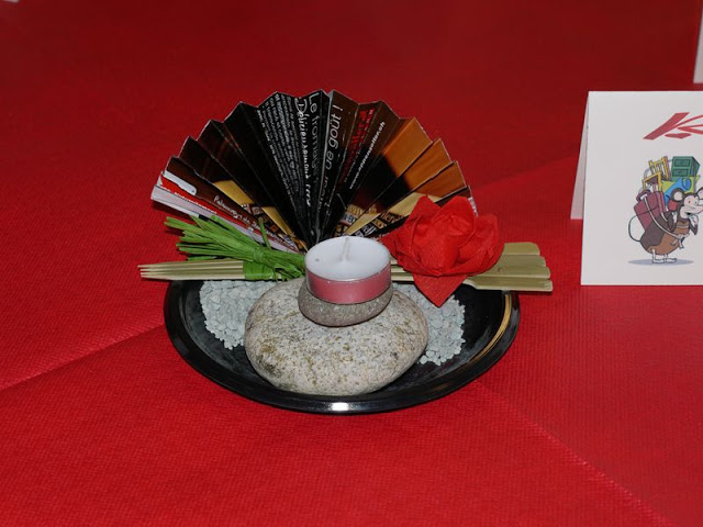Gần 200 khách đến tham dự buổi tiệc toàn dân mắt xanh mũi lõ, ngoại trừ hai vợ chồng mình và vài ba người nữa là dân Việt Nam. Ban tổ chức thì hoàn toàn là dân Tây “rặt” (nếu không kể một chị Việt kiều đến giúp chỉ huy phần nấu nướng). Tuy thế, họ đã cố gắng tạo ra một không gian Tết Việt Nam. Một vài bà đầm diện áo dài hoặc trang phục na ná áo dài. Vài ông Tây mặc áo thêu rồng phụng cho có vẻ Châu Á 🙂 Một con “Quý Tỵ” xếp bằng giấy, vài cái đèn lồng trên tường, một bàn bầy bán những món đồ thủ công nhập từ Việt Nam.