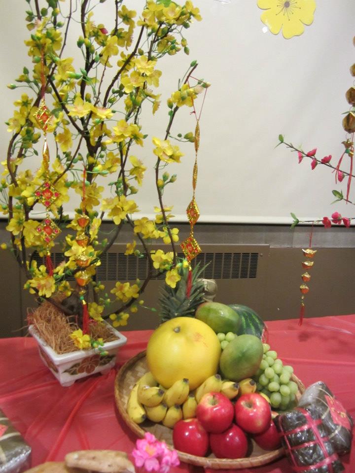 Món ăn Tết do các nhóm sinh viên chuẩn bị. Các món chính của ngày Tết không thể thiếu gồm có: bánh chưng, bánh tét, xôi, gà luộc, chả giò (nem), miến.. và món tráng miện là hoa quả và chè ngọt.