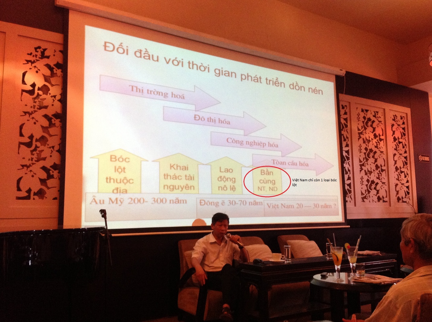 Còn Việt Nam, chúng ta đề ra nhiệm vụ công nghiệp hóa trong vài ba chục năm. Nếu đi con đường cũ, thì hiện chỉ còn 1 loại bóc lột là bần cùng nông dân, nông thôn.