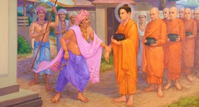 Hình ảnh minh họa trong bài này là Đức Phật tay cầm bình bát đi khất thực trong thị trấn, công việc của Ngài là giáo hóa cho mọi người từ những người nghèo khó nhất cho đến những người quyền quý nhất, và nuôi thân mạng bằng những đồ ăn chay được cúng dàng. Điều này cho chúng ta thấy những người đã giác ngộ vẫn luôn làm việc, “mọi Phật, mọi Bồ tát đều luôn làm việc sau khi thành Phật/Bồ tát. Phật Thích Ca thì giảng dạy khi chưa nhập diệt và ngày nay vẫn tiếp tục là bổn sư của thế giới ta bà, giúp các chúng sinh diệt độ.”
