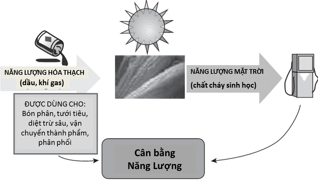 Hình 21. Quá trình sản xuất nhiên liệu sinh học yêu cầu không chỉ sử dụng đất trồng trọt, mà còn một lượng lớn năng lượng hóa thạch.
