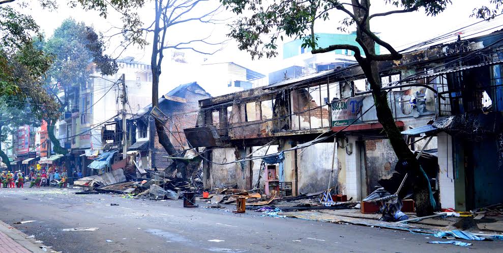 Lúc 21h30 phút cùng ngày, ngọn lửa lại bất ngờ bốc cao từ sau đám cháy vừa tàn khiến dân phố hoảng loan. Tuy nhiên, lực lượng công an và PCCC túc trực đã nhanh chóng dập tắt. Sáng ngày 29/7/2014, nhà chức trách vẫn tiếp tục phong tỏa bảo vệ hiện trường, trong khi các hộ dân có nhà bị cháy đã tạm thời sơ tán đến nơi khác hoặc trú tạm ở nhà bạn bè, người thân.
