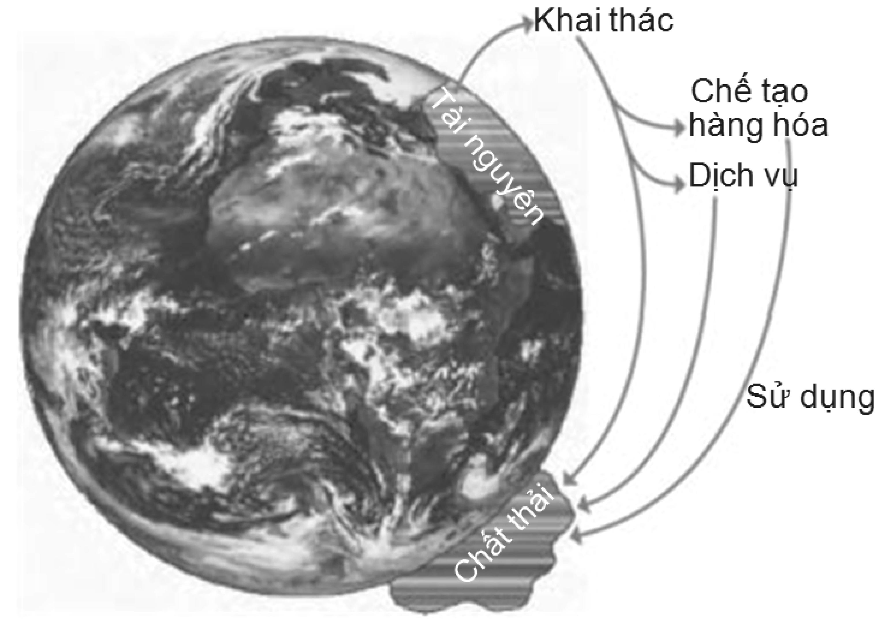 Khi hàng hóa và dịch vụ được sản xuất, như thể là chúng ta đã đào một lỗ trên lớp vỏ của Trái đất để trích xuất các nguồn tài nguyên cần thiết và tạo ra một ngọn núi chất thải sau đó (Hình 71).