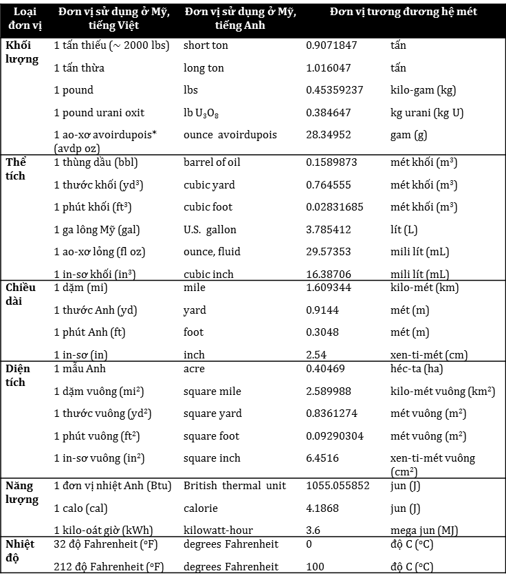 Phụ Lục D: Bảng quy đổi đơn vị hệ mét