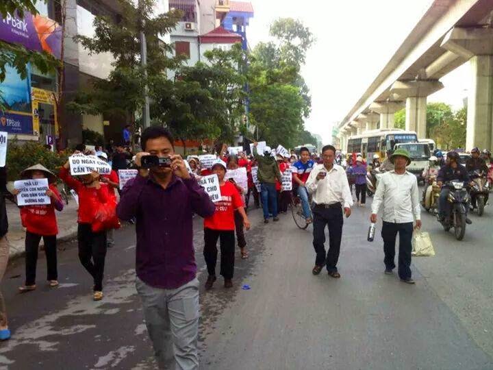 09h00: Uất ức, đau khổ dồn nén, dân oan cả nước đang có mặt tại Hà Nội bắt đầu xuống đường diễu hành biểu tình lớn, kéo vào trung tâm TP Hà Nội với sự tham gia của gần 1000 người.