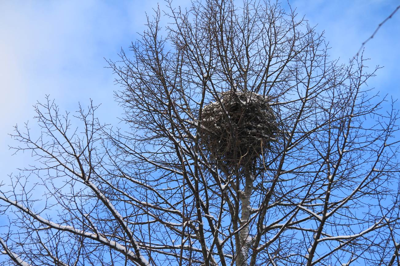 Một tổ chim lớn lộ ra sau khi lá cây rụng hết