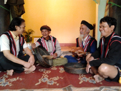 Nhưng giờ sức khỏe yếu rồi, già không lên rừng nổi nên mọi việc phó thác cho thằng con cả, mình chỉ ở bên hướng dẫn chúng nó thôi” – già làng Hồ Văn Hoàng phân trần. Tuy thế, nhưng chẳng khi nào người ta thấy già Hoàng chịu nghỉ ngơi. Để rồi khi màn đêm vừa buông xuống, ông lại cho gọi đám thanh niên trong làng đến để truyền đạt kinh nghiệm chơi một số bài chiêng quý, hướng dẫn cách sử dụng các loại nhạc cụ hay khả năng ứng tác lời hay ý đẹp của làn điệu Xa ju… Thế nên, cũng chẳng có gì là lạ khi các chàng trai cô gái ở đây đều biết cách đánh chiêng, múa Cà Đáo cũng như chơi đàn B’roc 2 dây, Rà ngay hay A máp… ngay từ bé. Có lẻ chính vì lý do này mà hiện nay, thôn 2 cũng là nơi còn giữ được số lượng chiêng nhiều nhất (hơn 100 đôi) cùng các loại nhạc cụ truyền thống của đồng bào Cor Quảng Ngãi.