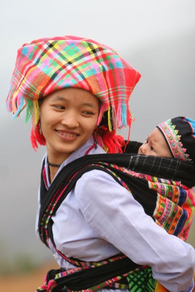 Rực rỡ khăn trùm đầu của thiếu nữ Kháng.