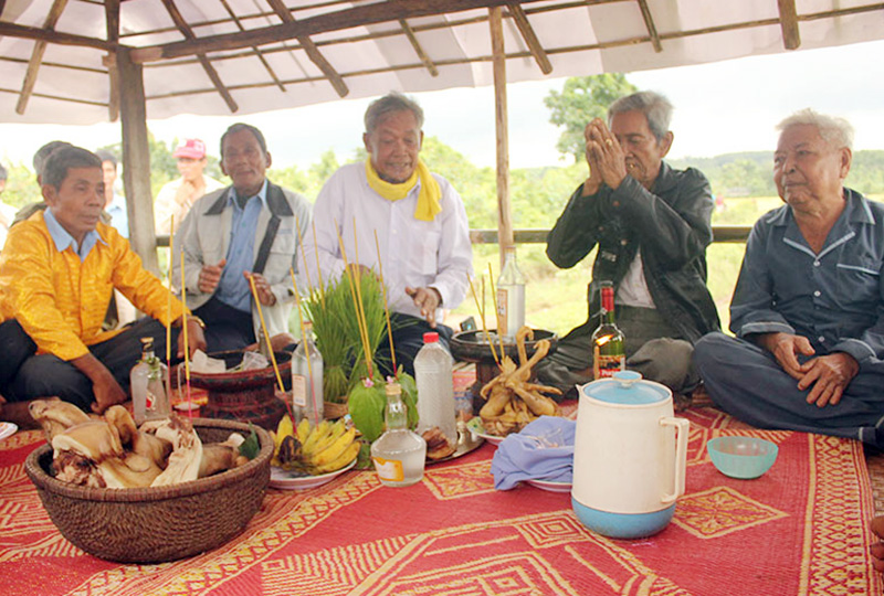 Lễ được cử hành tại một rạp lễ dựng trên một khoảng đất trống, rộng rãi trong phum và nghi thức quan trọng nhất, khởi đầu lễ là cúng thần bảo hộ của phum tại miếu. Thờ Neak ta là một loại tín ngưỡng của người Khmer và chúng ta có thể gặp miếu thờ Neak ta ở hầu hết các phum sóc của người Khmer.