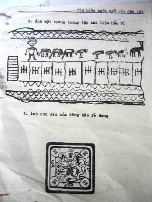 Năm 1908 Bonyfacy chụp lại được một con dấu của người Pà Thẻn ở vùng thượng lưu sông Lô, dùng trong những cuộc khởi nghĩa chống lại bọn thống trị địa phương và thực dân. Trên con dấu ngoài sáu chữ Hán (đây có lẽ là trường hợp ngoại lệ duy nhất), thì có hình vẽ những con vật bốn chân và hai chân, tương tự như chữ viết hình vẽ đã nêu ở trên.