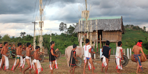 Hôm ấy, trong tiếng chiêng, tiếng trống rộn ràng nhưng không kém trang nghiêm ở nhà rông làng Le, khách thập phương và cả dân làng tụ tập để chứng kiến Yang Plút, bởi đây là cơ hội không dễ gì có được.