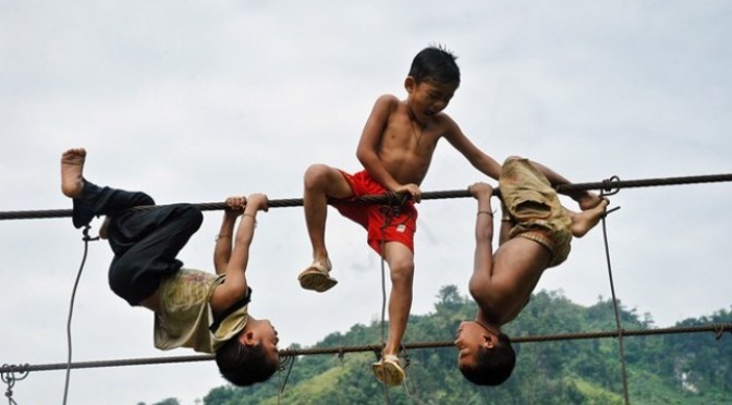 Nghe em Hiểu kể mình thấy khiếp quá! Trò chơi đu chân như em Hiểu kể rất nguy hiểm. Nhưng cũng thương các em nhỏ trong Buôn Làng sống trong môi trường điều kiện kinh tế khó khăn, những trò chơi đều là tự chế như cái xích đu là những tấm ván được cột dây hai đầu, treo trên những cành cây ổi, cây mít, cây me trong sân nhà. Các em bé gái địu một khúc gỗ thay con búp bê, các em trai kéo những cái bẹ chuối làm xe chạy chơi, những em lớn hơn lấy tay lăn những lốp xe đạp hư chạy chơi trước con đường nhà mình rất hạnh phúc.