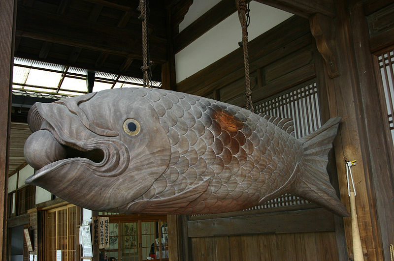 Vì sự tích như đã kể ở trên, mà từ ngày ấy tới nay, Mõ mới được chạm khắc theo hình con cá để làm kỷ niệm mà thức tỉnh người tu hành. Chính vì thế trong tiếng Hán cũng như tiếng Nhật, tên gọi nhạc cụ này là Mộc Ngư (Cá Gỗ).