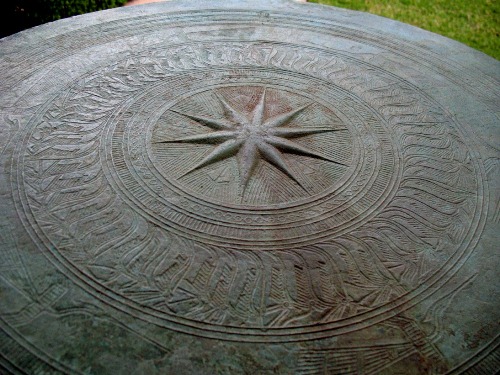 – Giữa mặt trống là hình ngôi sao, phần nhiều là sao 12 cánh (có thể là tượng trưng cho 12 tháng trong năm), xen giữa các cánh sao là họa tiết lông công hoặc những đường vạch chéo có hình tam giác lồng vào nhau. Có những hình vẽ thể hiện sinh hoạt của cộng đồng người Việt cổ như giã gạo, săn bắt, thờ cúng, trẻ em chơi đùa…