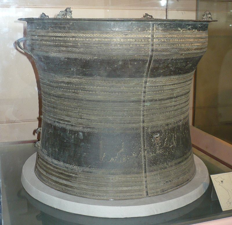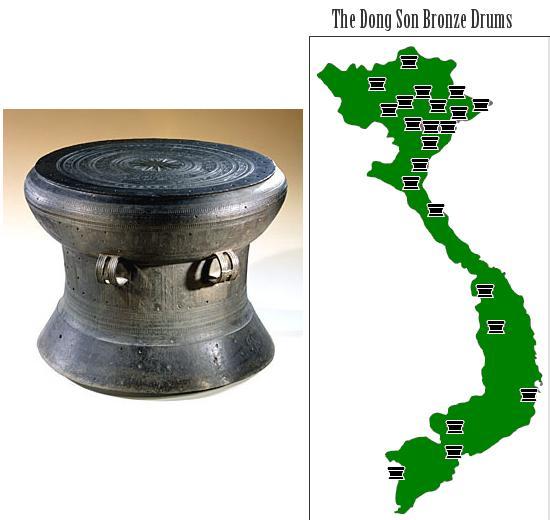 Trống Đồng Đông Sơn: là một loại nhạc cụ dùng trong các buổi lễ hay khi đi đánh nhau. Trống đồng được tìm thấy ở nhiều nơi trên đất Việt Nam, như Thanh Hóa (Đông Sơn, 24 trống), Hà Đông (9 trống), Bắc Ninh, Cao Bằng (mỗi tỉnh 3 trống), Hà Nam, Hà Nội, Hoà Bình, Kiến An (mỗi nơi 2 trống), Nam Định, Lào Cai, Sơn Tây, Yên Bái, Hải Dương, Nghệ An, Thủ Dầu Một, Kontum (mỗi nơi một trống). Ở Hoa Nam thì tìm thấy nhiều nhất, ở Vân Nam (5 trống). Các tỉnh khác thì Quế Châu, Quảng Tây, Tứ Xuyên (mỗi tỉnh tìm thấy 3 trống), Quảng Đông (2 trống). Tại Cam Bốt, Lào, Thái Lan, Miến Điện, Mã Lai, Nam Dương cũng thấy nhiều trống đồng cổ. Riêng Thái Lan và Lào cũng như ở xứ Mường (thượng du Việt Nam) ngày nay người ta vẫn còn dùng trống đồng. Trống đồng đẹp nhất phải kể đến các trống Ngọc Lũ, Hoà Bình, và Hoàng Hạ.