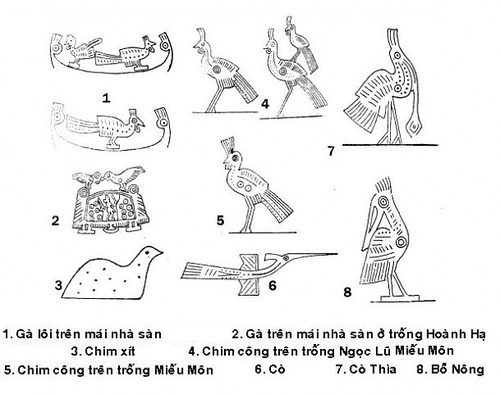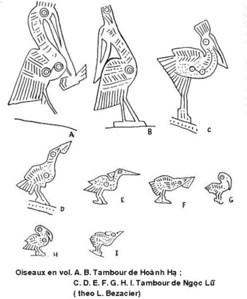 • Vành chim trên mặt trống thường khắc 4 con, một vài trống là 6 con.