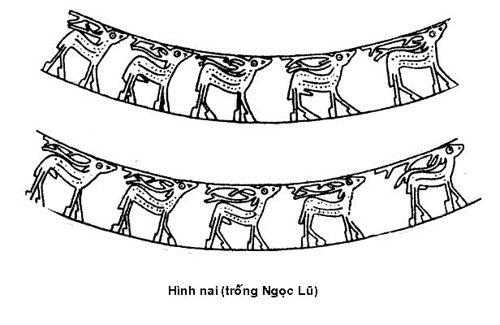 Trống Đồng Ngọc Lũ: tìm thấy ở chùa Ngọc Lũ (Hà Nam) vào năm 1901. Trống này cao 0,63 mét (1.8 ft), đường kính mặt trống 0,86 mét (2.5 ft), được trang trí bằng các hình chạm sâu xuống cả trên mặt trốnglẫn tang trống. Chính giữa mặt trống là một hình ngôi sao (hay mặt trời) 14 cánh. Chung quanh ngôi sao này là 16 vòng tròn đồng tâm có trang trí bằng nhiều hình kỷ hà hay hình vẽ khác nhau. Giữa vòng thứ 5 và thứ 6 có khắc hình 2 căn nhà mái cong, có sàn, trong có người tóc dài ngồi. Trước nhà là 4 dàn trống và đoàn vũ nhạc nhảy múa, thổi khèn. Sau nhà có 2 người đang giã gạo. Xen kẽ với 2 nhà sàn trên là 2 nhà sàn mái tròn trong có người cầm kiếm. Trước nhà này có một người tay phải cầm kiếm, tay trái cầm một con chim. Sau nhà là một đoàn võ sĩ cầm lao, cầm kiếm đang múa. Giữa vòng thứ 7 và thứ 8 có chạm hình 2 đ àn hươu (10 con mỗi đ àn) và xen kẽ với 2 đ àn chim đang bay (mỗi đ àn 8 con). Giữa vòng thứ 8 và thứ 9 có khắc 18 con chim mỏ dài đang bay, xen kẽ với 18 con chim đang đậu dưới đất. Trên tang trống, phần phình ra có khắc hình thuyền trên có những người cầm lao, kiếm, cung, đang chuẩn bị chiến đấu, hoặc đang nhảy múa hoặc chèo thuyền. Trên phần thẳng đứng có những đường trang trí kỷ hà thẳng đứng hay nằm ngang đóng khung lấy những hình người cầm rìu và lá chắn.