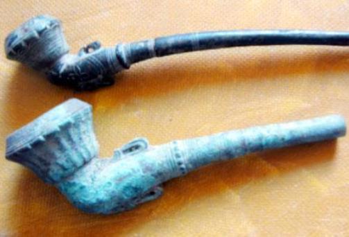 Một, do Moulié lấy được của bà góa quan lang người Mường ở miền Sông Đài tỉnh Hoà Bình. Chiếc này được đem trưng bày ở Hội Chợ Quốc Tế Paris 1889 rồi mất tích. Đến năm 1936 thấy xuất hiện ở bảo tàng viện Guimet.