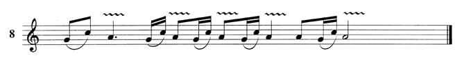 Ta có thể chuyển ghi nhạc phổ bài Phần hóa cho kèn ở trên sang lối ký âm trên khuông nhạc 5 dòng kẻ như sau (trích 8 nhịp đầu):