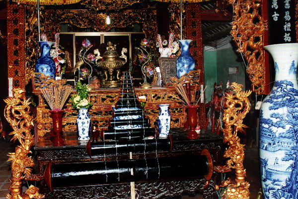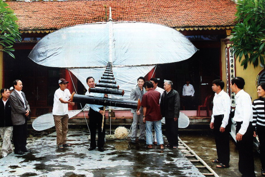 13 cây sáo của “con diều kỷ lục” được đưa vào làm lễ tại đình làng.