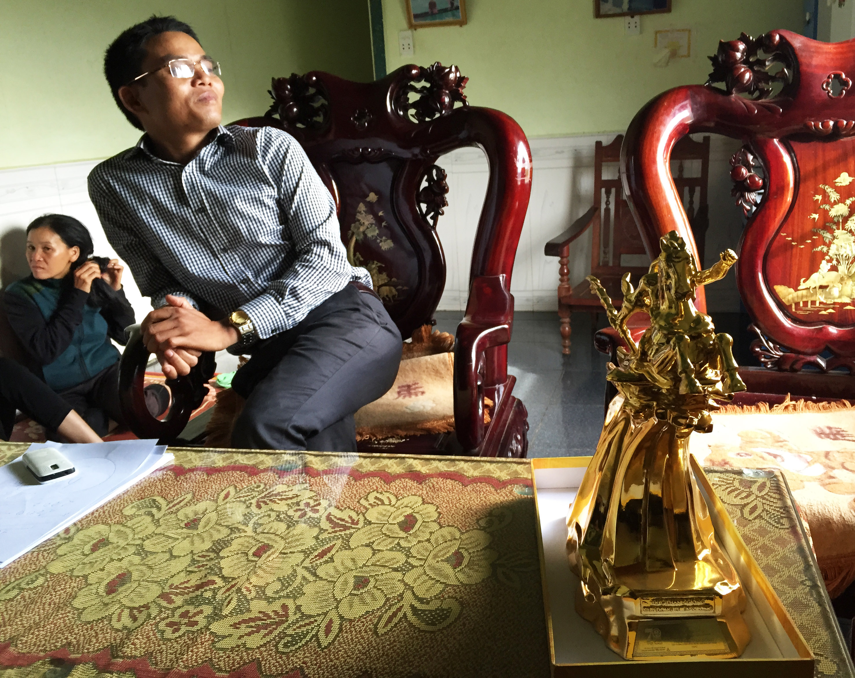 Mở đoạn clip thu lại chương trình phát trên VTV4, ông Cao Hữu Lợi- Bí thư Đảng ủy xã Ea Puk chiếu lại đoạn “trao tượng Thánh Gióng – Phù Đổng Thiên Vương cho những cá nhân xuất sắc”. Nhiều người cùng quả quyết một trong những gương mặt “cá nhân xuất sắc” đó đích thị là thầy bói Phan Bá Huỳnh.