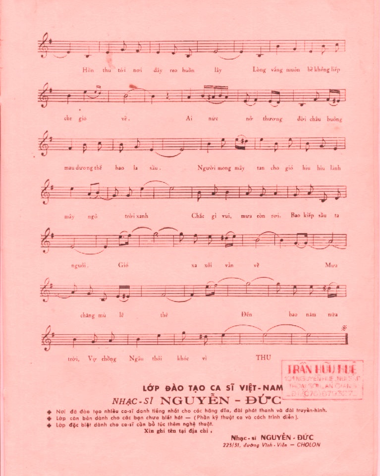 Ngũ cung trong bài này viết theo lối hát sa mạc (bởi thế nghe buồn xa xăm): mi mi mi mi là rề mi (đêm nay thu sang cùng heo may), la la la la mi sol la (đêm nay sương lam mờ chân mây)… lung linh đứng bên cạnh những âm điệu Tây phương với những bán âm chênh vênh: la si la đố si la mi (thuyền ai lờ lững trôi xuôi dòng)… Những âm điệu này được ông lồng vào những lệch phách, đảo phách (syncope) của lối hát ả đào thật lửng lơ.
