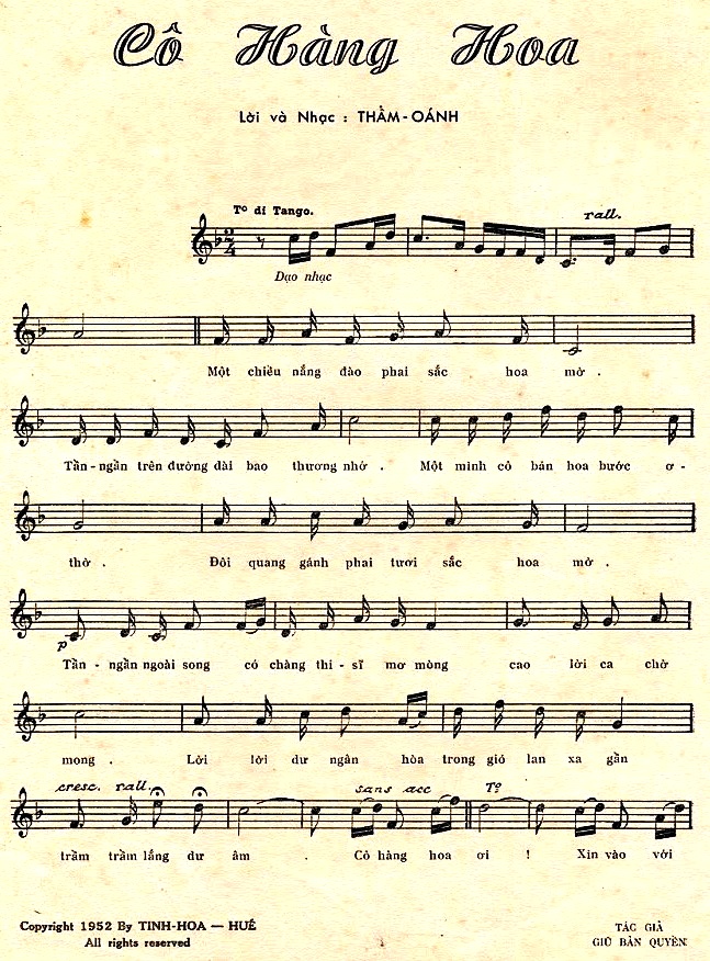 – Nhạc sĩ Thẩm Oánh (của nhà văn Lê Văn Phúc sẽ hướng dẫn các bạn tìm hiểu thêm chi tiết về sự nghiệp của cây đại thụ tài hoa của nền Tân Nhạc Việt Nam và người nhạc sĩ bạn đời của ông mà rất ít người trong các thế hệ sau trong chúng ta biết đến).