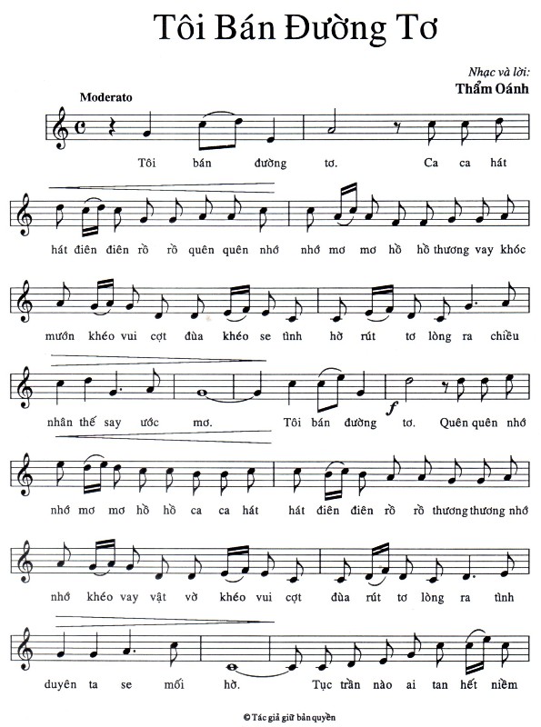 Hôm nay mình giới thiệu đén các bạn các ca khúc: “Tiếng Khóc Trong Phòng The”, “Nhà Việt Nam”, “Thiếu Phụ Nam Xương”, “Nhớ Nhung”, “Vương Tơ”, “Giấc Hoàng Lương”, “Xuân Về”, và “Thích Ca Mâu Ni Phật” của Nhạc sĩ Thẩm Oánh.